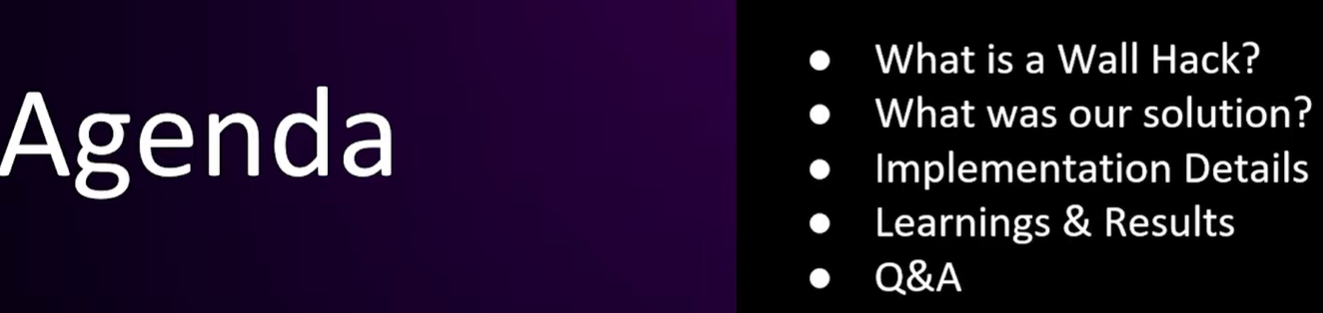 자, 그럼 핵이 정확히 무엇인지부터 이야기해 보겠습니다. 왜 월핵이 발생하는지, 그리고 저희가 게임에서 핵을 방지하려고 했던 이유는 무엇인지 설명드리겠습니다. 그다음, 문제 해결을 위한 접근 방식을 소개하고 구현 과정에 대해 자세히 살펴보겠습니다. 마지막으로, 핵이 얼마나 효과적이었는지에 대한 소감과 성능 데이터를 공유한 후, 여러분의 질문을 받겠습니다.